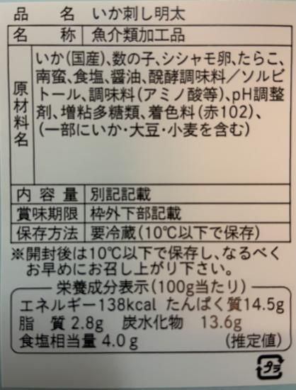 ピリ辛の明太子と鮮度の良い肉厚なイカを和えたご飯のお供にぴったりな商品です。